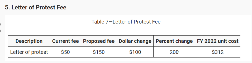 7. Letter of Protest Fee(第三方可以对申请中的商标提出抗议信):从每标每类50美元涨到每标每类150美元。