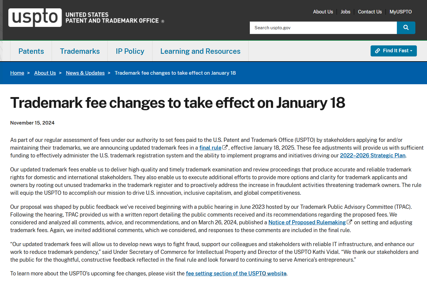 1. Application(商标申请):从每标每类250美元涨到每标每类350美元