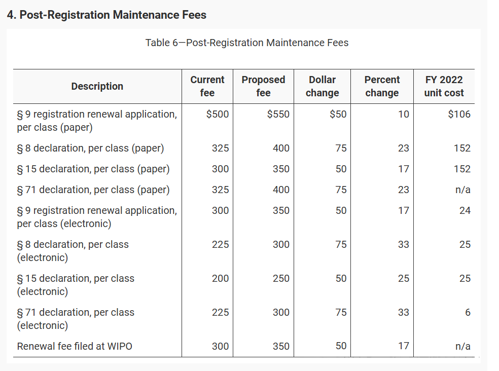 6. Section 9 (10年延期): 从每标每类300美元涨到每标每类325美元。